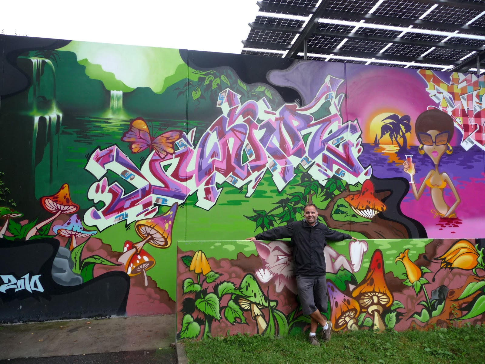 Steve chilling with some urban graffiti.